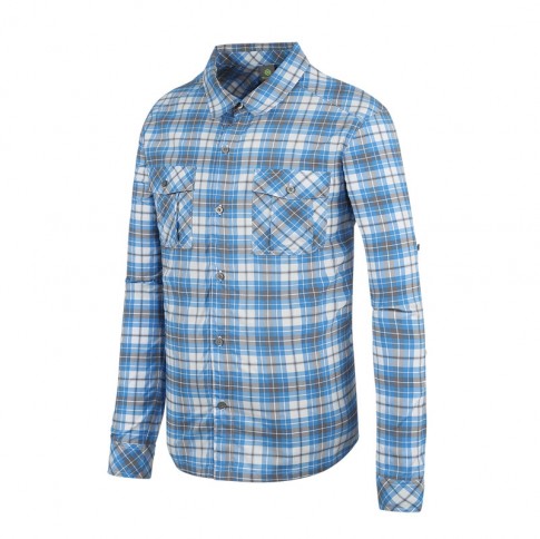 男彈性抗UV格子長袖襯衫