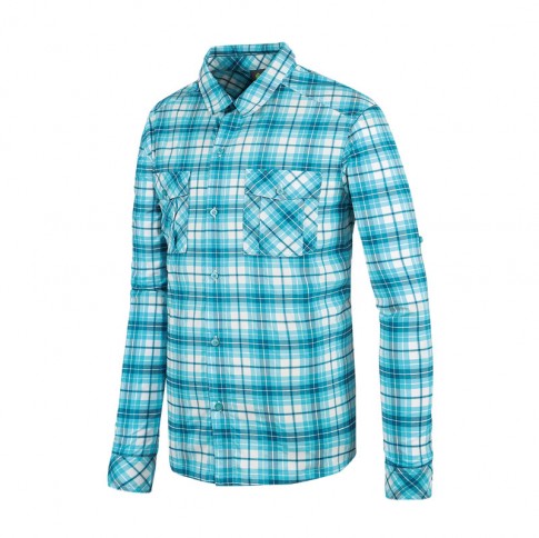 男彈性抗UV格子長袖襯衫